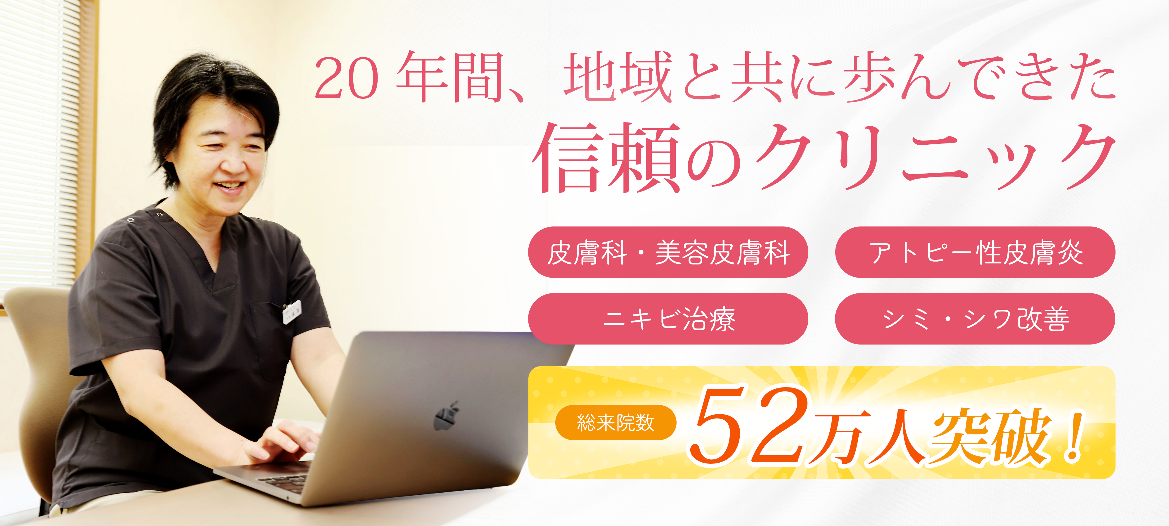 当院は皮膚科と美容皮膚科を専門とし、高度な専門知識を活かして患者さんのお悩みに真摯に向き合います。肌トラブルの原因はさまざまですが、私たちはプロの視点で適切な治療を提案し、保険診療から美容診療まで幅広く対応しています。どんな悩みもお気軽にご相談いただければ幸いです。
